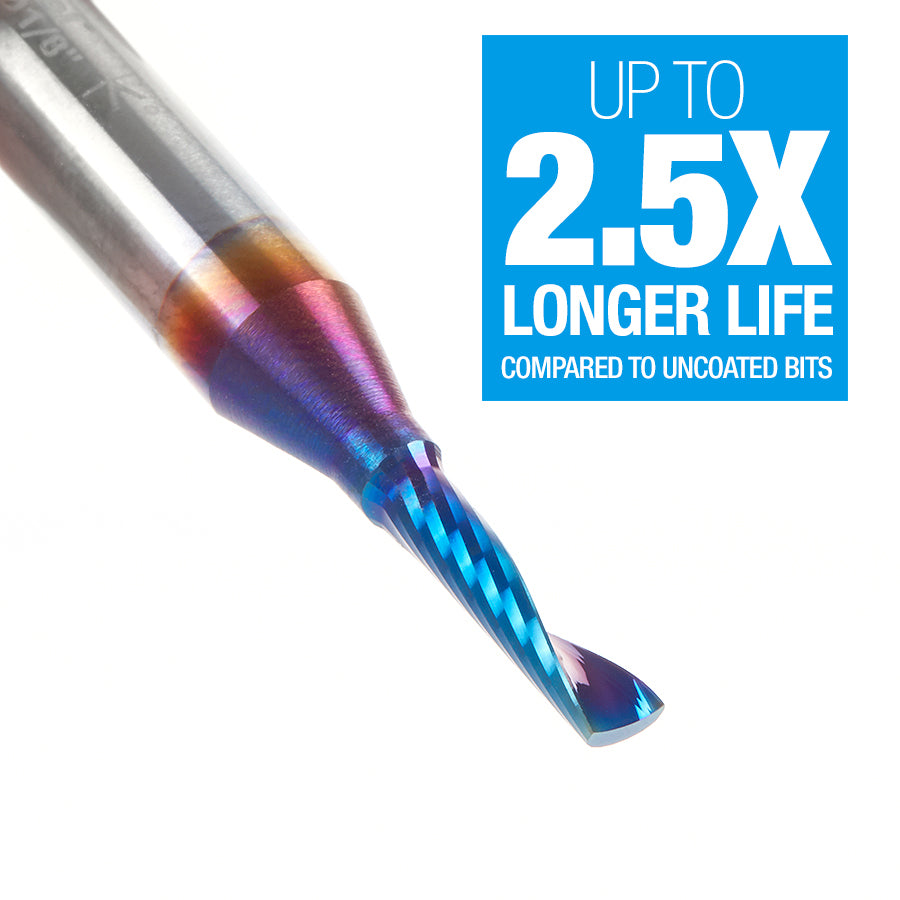 51411-K Solid Carbide CNC Spektra™ Extreme Tool Life Coated Spiral 'O' Flute, Plastic Cutting 1/8 Dia x 1/2 x 1/4 Shank Up-Cut Design Router Bit