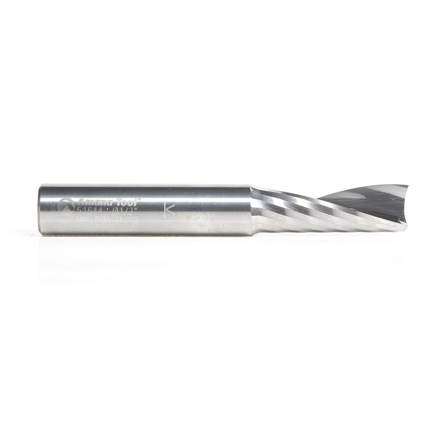 51644 Solid Carbide CNC Spiral 'O' Single Flute, Aluminum Cutting 1/2 Dia x 1-3/8 x 1/2 Shank x 3-1/2 Inch Long Up-Cut Router Bit